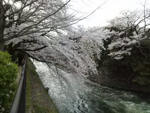 4月初旬に写した東山二条にある訪問看護ステーション近くの疎水べりの桜です。